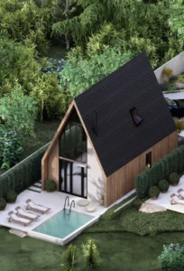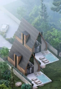 Rezultati është një realizim i projektit me precizion të lartë, ku 99% e renders përkthehen besnikërisht në zbatim, duke siguruar që vizioni arkitektonik të materializohet në mënyrë të qëndrueshme dhe të integruar me ambientin.